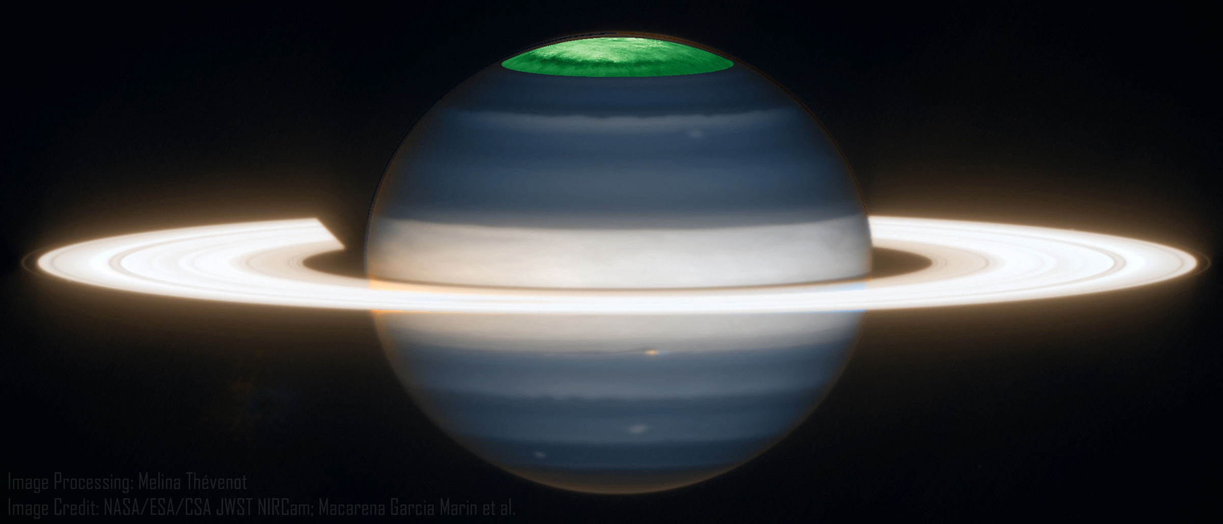 最新的JWST观测给出了缺失的一块拼图。 斯托拉德团队联合英国和美国多家机构,利用JWST持续监测了土星北极的极光区——类似地球的北极光——覆盖了完整的一个“土星日”,获得了前所未有时空分辨率的观测数据。 研究人员重点分析了土星上层大气中一种名为三氢阳离子(H₃⁺)分子的红外辐射,这种分子是温度变化的天然“探针”,可用于反演大气加热状况和粒子密度分布。