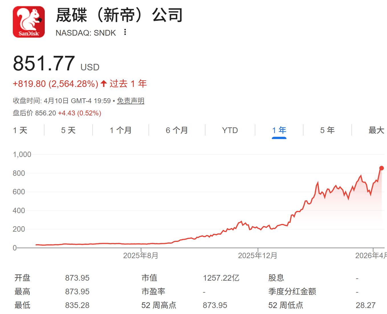 周五,闪迪股价微幅下跌。但今年以来,得益于AI热潮下的存储芯片超级周期,该股已累计上涨逾200%。而过去一年,该股涨幅达到了惊人的逾2500%。