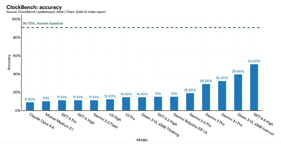 AI能在数学奥赛拿金牌,但只有一半的概率能看懂模拟时钟。AI在加速,但加速的不是同一个方向。