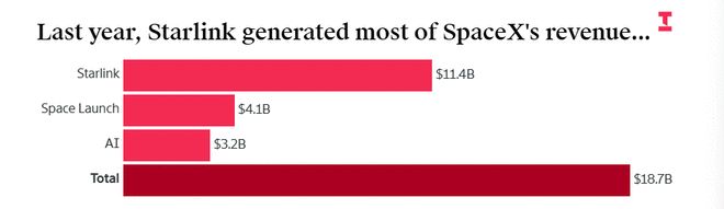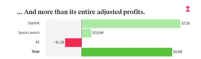可以说在这个万亿估值的帝国里,星链正靠着一己之力养活全家。