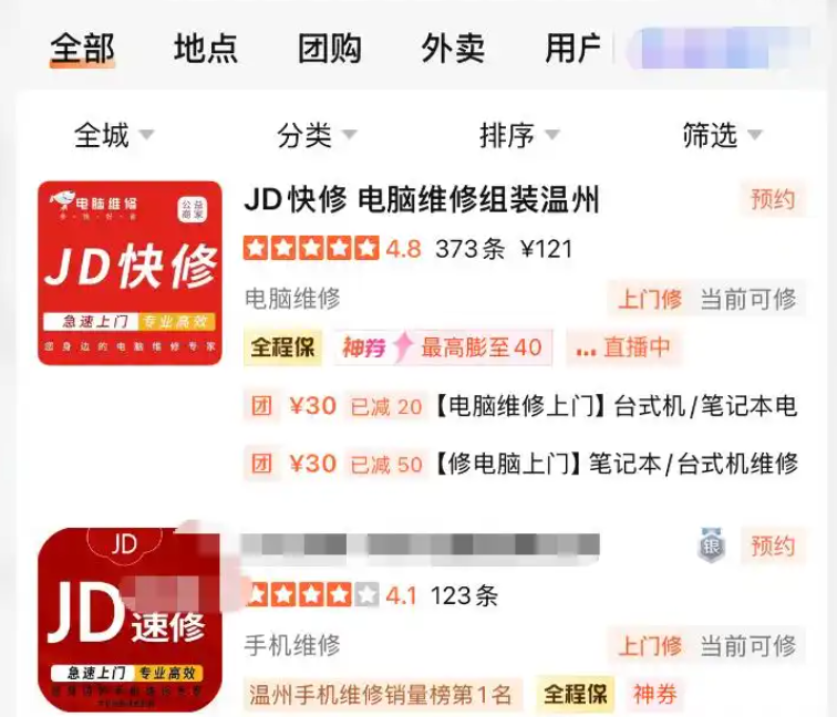 据调查发现,全国多平台均有“JD快修”“JD速修”等名称相似店铺,部分定位与电话归属地不符,且与京东无任何合作关系。
