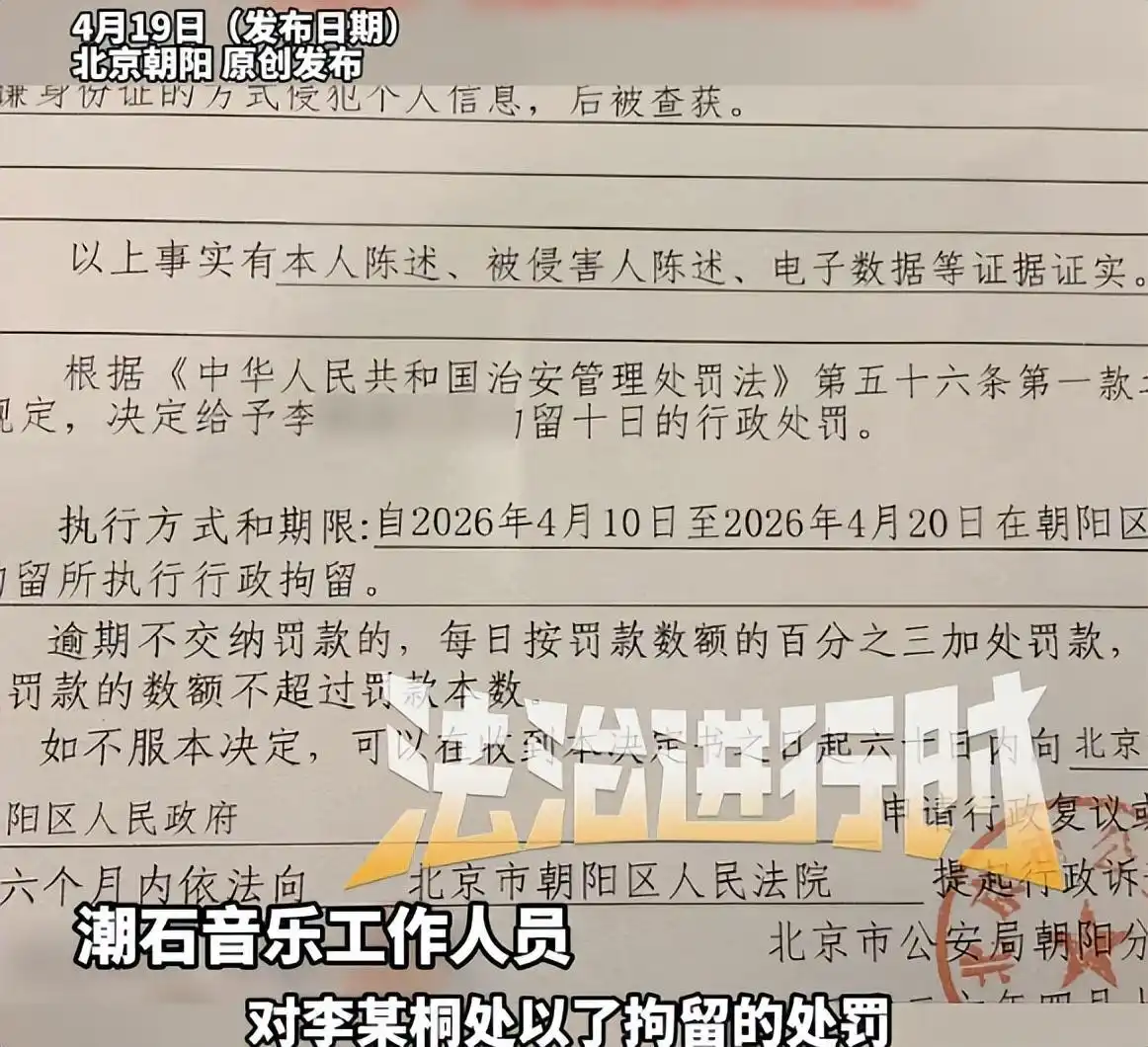 同时,薛之谦方在采访中展示了北京市公安局朝阳分局行政处罚决定书,而李雨桐在4月5日之后,没有发布新的微博。