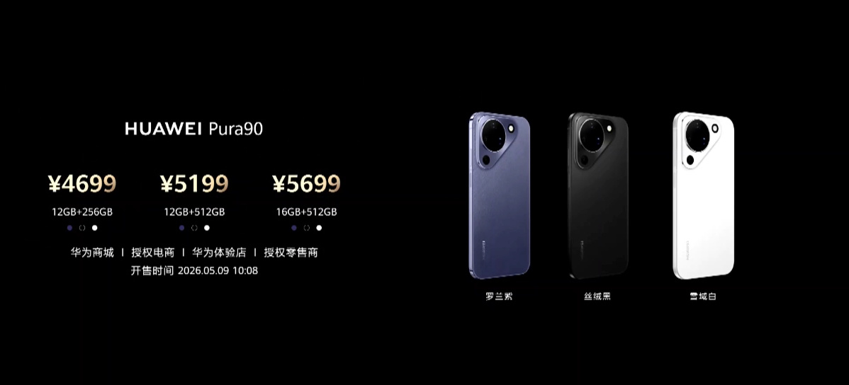 华为Pura 90系列正式发布:全系直屏设计,4699元起