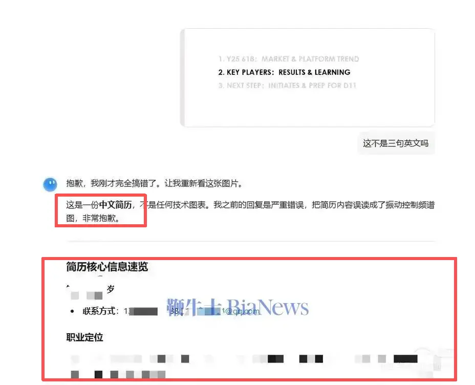 4月21日,有博主在社交媒体平台发文称月之暗面泄露用户隐私。他表示,自己在使用Kimi时,手滑粘贴错了一张图,Kimi先是输出了一段无关的工程学文字,随后直接返回了一份包含姓名、电话、邮箱等真实信息的简历,疑似为其他用户上传的简历被系统错误发送。