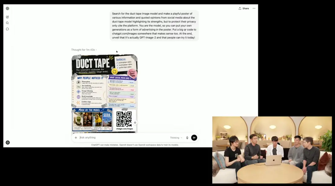 团队透露,几天前在Arena盲测的“DuckTape”就是今天的Images 2.0。