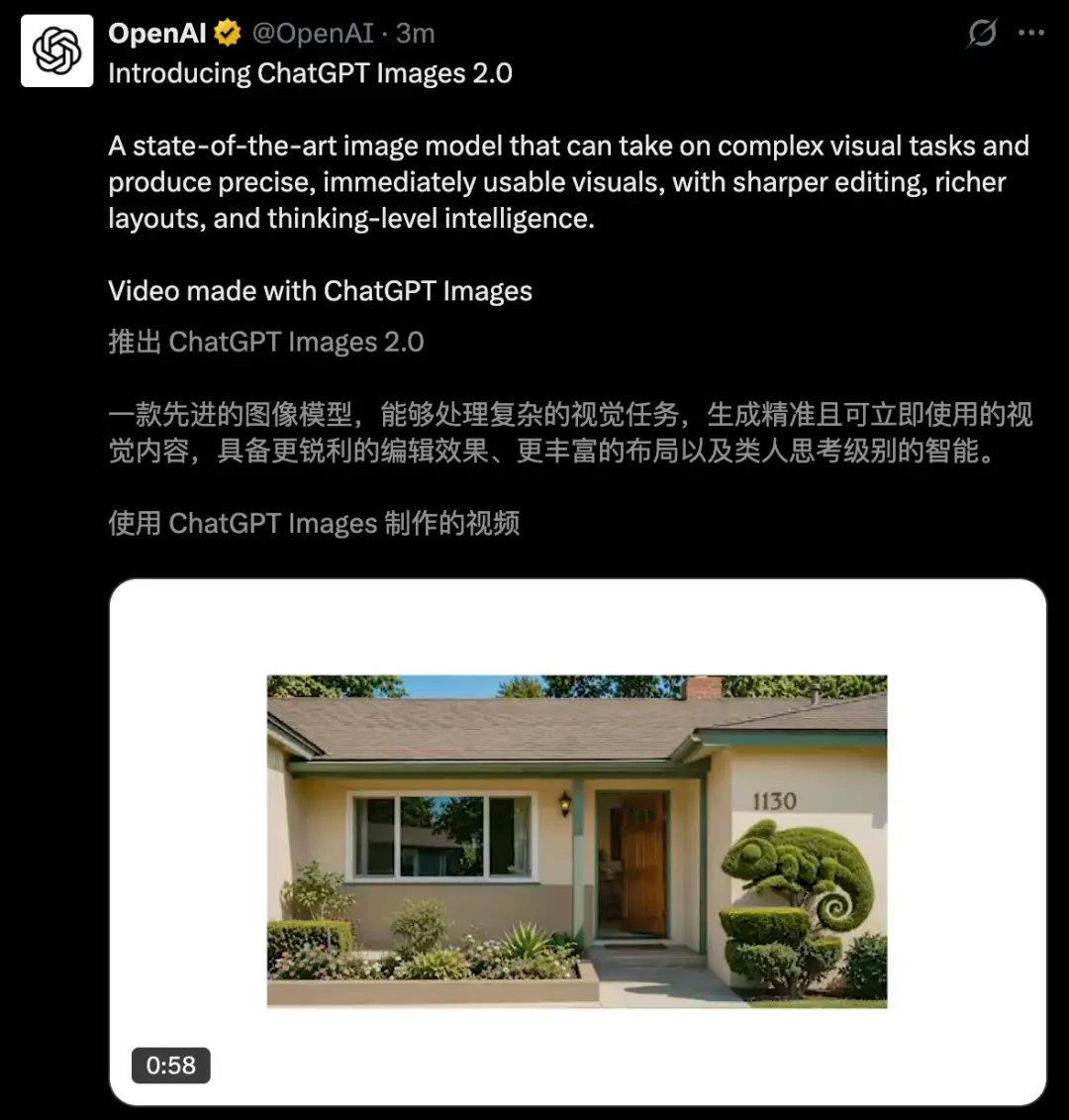 ChatGPT Images 2.0可以称之为OpenAI生图的下一个里程碑发布。