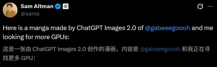 奥特曼还秀了一番,和4o图像负责人Gabriel Goh一起更多GPU的漫画图。