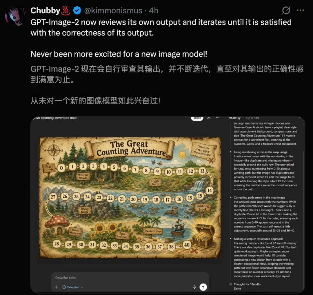 当在ChatGPT中选择思考模型时,Images 2.0不再只是一个“你说我画”的渲染器,而是变成了一个视觉思考伙伴。