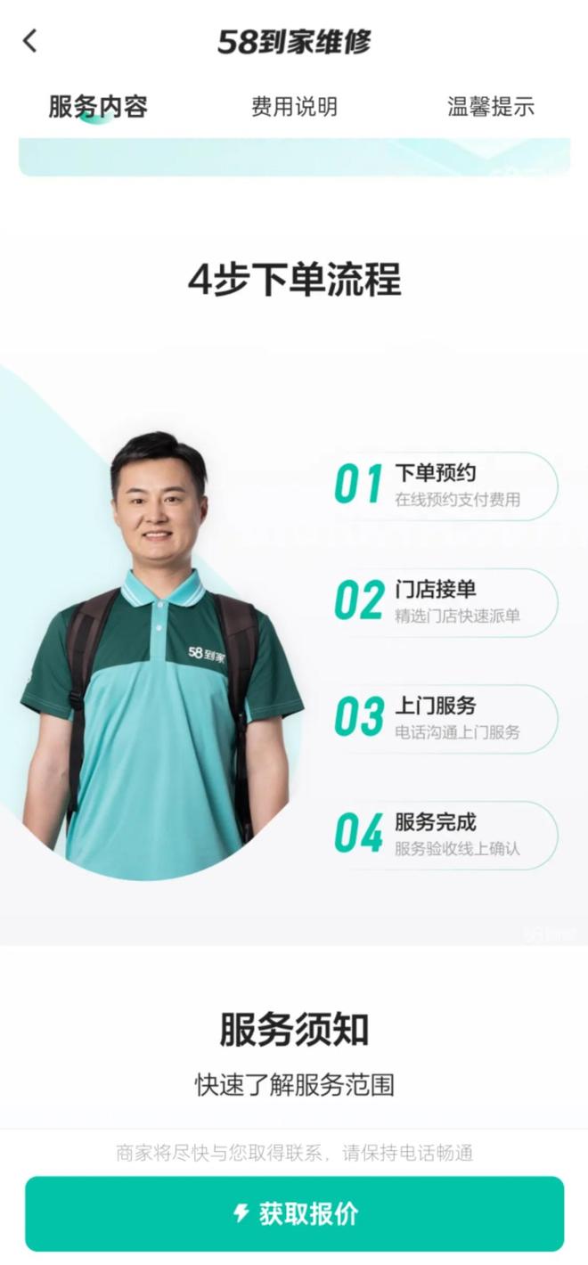 关于58同城、入驻公司和维修师傅,记者了解到,维修师傅想加入平台,大概有三种方式:一是独立个体入驻平台,自主接单;二是成为公司的合作师傅,接公司派发订单;三是应聘成为58同城直属师傅,有工服和工牌。