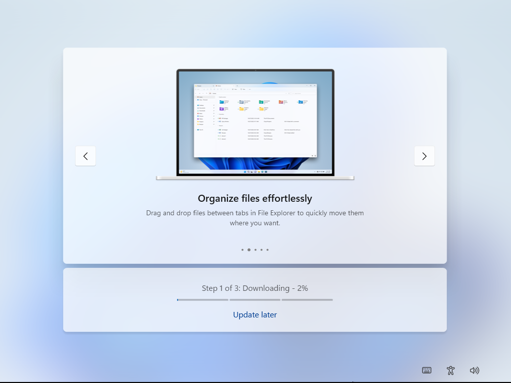 微软表示,公司已经意识到这一体验问题,并在 OOBE 中测试一项新的“Update Later”(稍后更新)开关。 这项功能今年较早时首次被发现,目前已在正式版中面向所有用户开放。 当用户在 OOBE 界面中点击“Update Later”后,系统会指示 Windows 11 在后台继续检查并准备更新,但不再打断首次使用流程。
