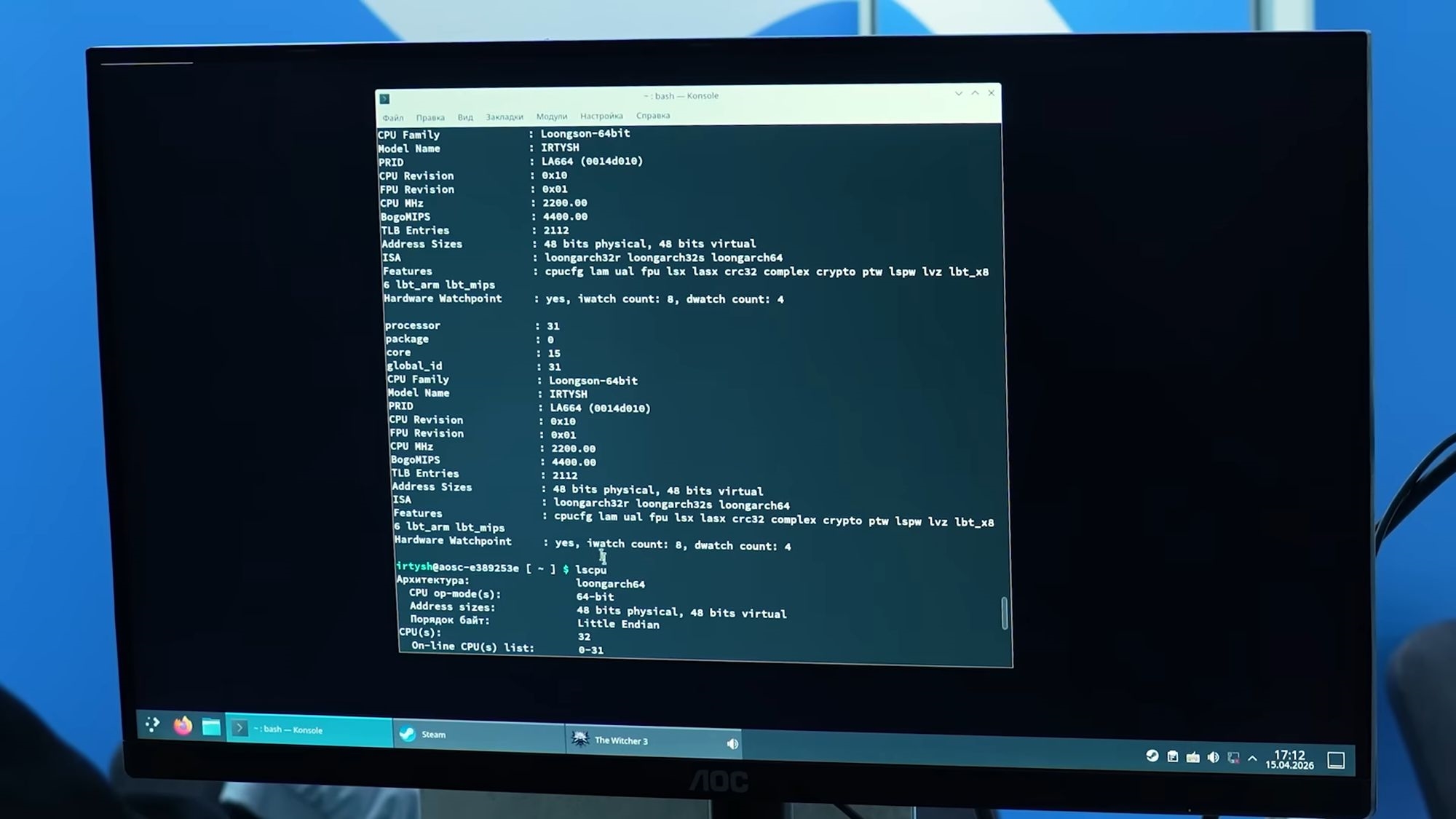 博主PRO Hi-Tech发布的视频显示,在莫斯科ExpoElectronica 2026展会上,俄罗斯自研Irtysh(额尔齐斯河)处理器公开演示了运行《巫师3》的画面,搭配AMD RX 9060 XT显卡帧率在22至38FPS之间。