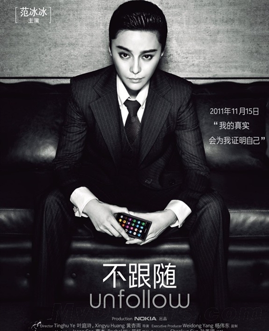 N9的首支中文宣传广告邀请了范冰冰前来出演,诺基亚表示,这是因为她的人生态度,非常符合N9的内在品质即不跟随。