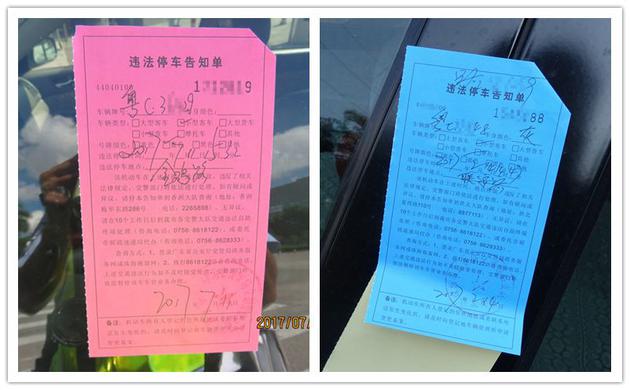 目前,警方使用的违停罚单有两种:一种是打印版,一种是手写版。▼