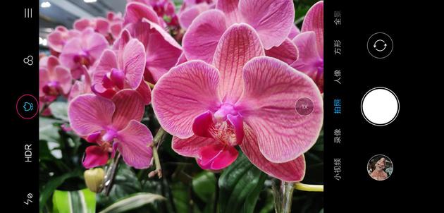 打开拍照界面,“AI相机”被放置在很明显的位置,识别出相应场景后此时的AI相机就会变成相应场景,我们拿拍照花举例。