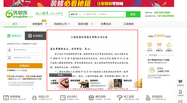 装修平台优居客今日宣布,由于经营不善而财务状况严重恶化,决定自11月26日起进入解散清算程序,解除与所有员工的劳动关系,公司现有地址自今日起正式关闭。在公告中,优居客表示,将成立清算组对所有原有业务进行梳理。而对于其债务,优居客称,各位债权人自2018年12月10日起持本人有效身份证件原件(或位营业执照原件及介绍信),前往指定地址进行债权登记。