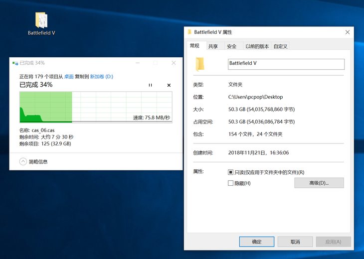 我们将一个含有154个文件共50.3GB的文件夹从高性能的NVME SSD拷贝到860QVO中,可以看到,在7GB左右出现了显著的写入性能下降,从500MB左右的速度降低到了75.8MB/s,QLC颗粒的性能被真实的展现了出来。