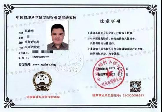 官网介绍,中国管理科学研究院是由原国家科委于1987年6月正式批准建立的国家科研事业单位,专门从事管理科学和相关交叉科学研究的新型科研机构,现为国际管理学者协会联盟(IFSAM)理事单位。而邵建华担任高级研究员的中国管理科学研究院行业发展研究所,“是直属中管院的全事业编制科研部门,成立 30多年来,在各种前沿科学研究领域起到了积极作用,赢得国家有关部委领导及社会各界的一致好评。行研所现有党政领导顾问、各行业专家顾问共120余人,大中型规模以上企业会员300余家。”