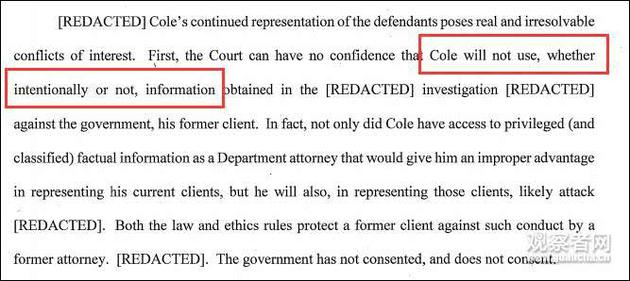 鉴于这种控辩双方信息采集的“失衡”,美国检方认为法院因处于“利益冲突”的考虑,要求取消科尔辩护资格。