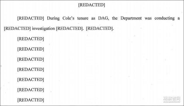 这次此案检方又补充道,这段期间内,“科尔亲自参与并监督了一项调查”。文件中多次对这项调查进行了强调,也有大篇幅详细的描述。但最终版本全部对其进行了加密。