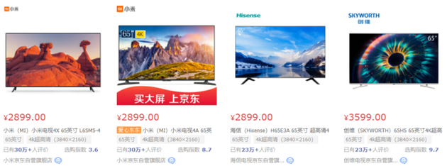 纵观目前电视市场,65英寸电视的价格已经下降得非常厉害,一些入门级的型号价格已经跌破了3000元,并且有着赶超55英寸电视的势头,所以为什么今年买电视的话一定要选择65英寸电视,反正都那么便宜了,那肯定是要选大的不选小的啊。