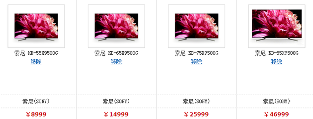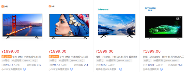Ok,先回到我们最初的话题,为什么说65英寸比55英寸,多了10英寸之后价格就差了一半?下面我们就以同一款电视型号的不同尺寸对比分析一下。