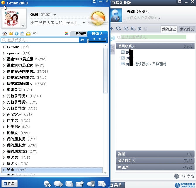 登录成功后第一眼看上去,多了个“我的企业”,其他的跟个人版飞信差别不太大。