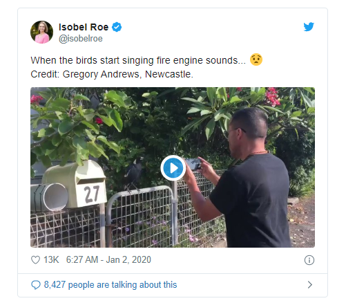 1月2日出现了令人难以置信的镜头,鸟儿开始模仿消防车的声音。