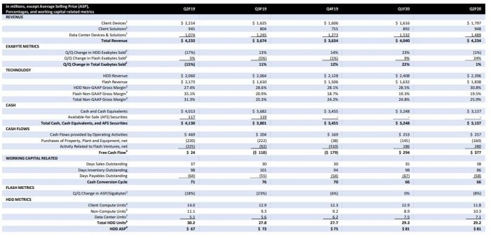 除了发布BiCS5新一代闪存技术,西数公司今天还发布了截至今年1月3日的2020财年Q2财报,当季营收42.34亿美元,同比持平,环比增长5%,净亏损1.39亿美元,去年同期净亏损为4.87亿美元。