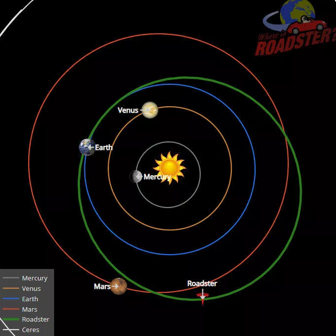程序员 Ben Pearson的“ Where is Roadster? ”网站一直持续跟踪车辆的可能位置。根据对周四(发射两周年)的最新估计,它位于火星轨道之外,而且离地球很远。 根据Pearson的数据,这辆车已距离地球超过10亿英里(16亿公里),并且已经进入了围绕太阳的第二轨道。