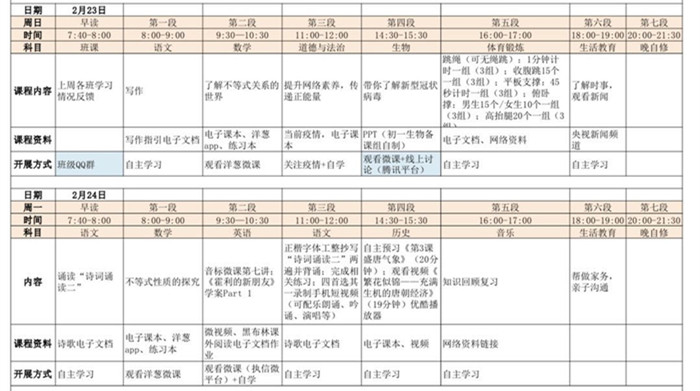 看完这份课表,我替这些孩子感到心疼,在家上课还要6点50起床,晚上10点才能结束一天的学习。而且这还只是初三年级,我记得曾经读高三都没有这么辛苦过。