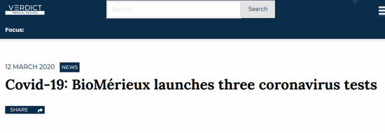 Verdict Medical Devices,《 Covid-19: BioMérieux launches three coronavirus tests 》