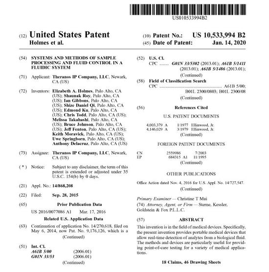 虽然公司是个骗子公司,但不得不承认,骗子的专利,也是专利。所以即使 Theranos 解散了,这份专利也还是有效的。