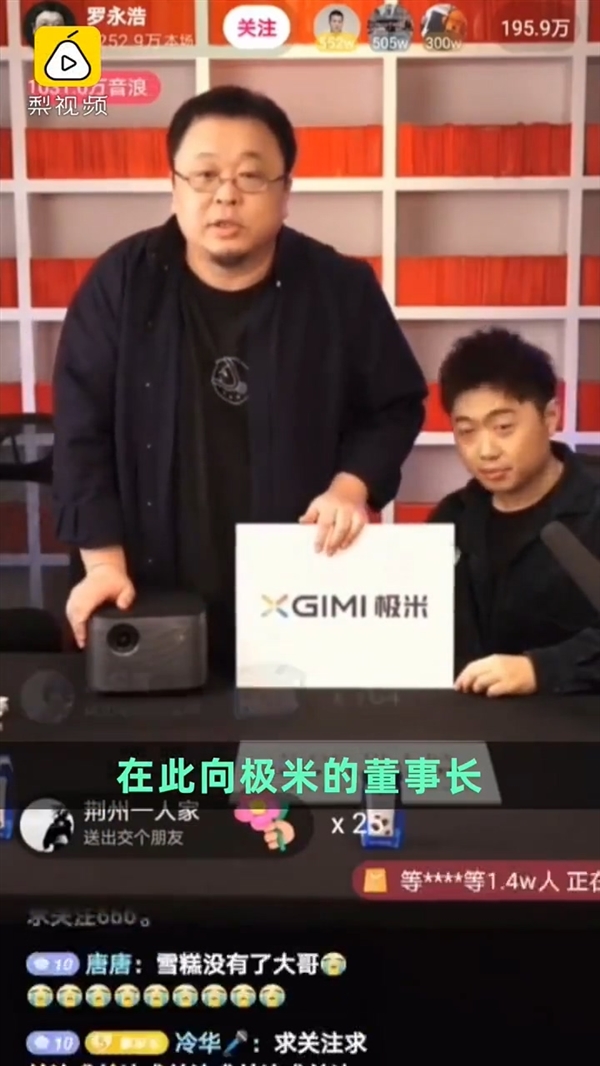 但就是在最火的极米身上,老罗不小心翻了车,直播中口误将极米投影仪说成了坚果投影仪。