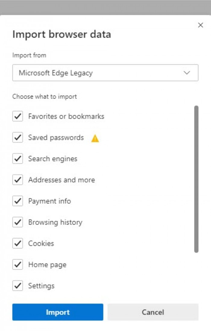 3.现在点击导入,将它们导入到基于Chromium的Edge中。