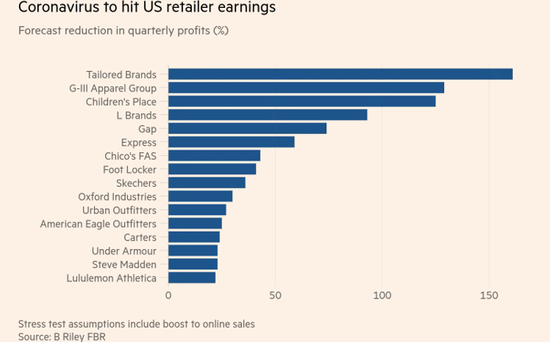 (新冠疫情将对美国零售业造成打击,图片为季度收入减缓预测)