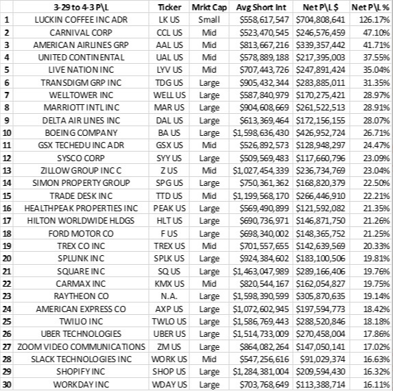 空头净盈利率第二和第三分别是嘉年华油轮(CARNIVAL)和美国航空(AIMERICAN AIRLINES),分别为47.1%和41.7%。