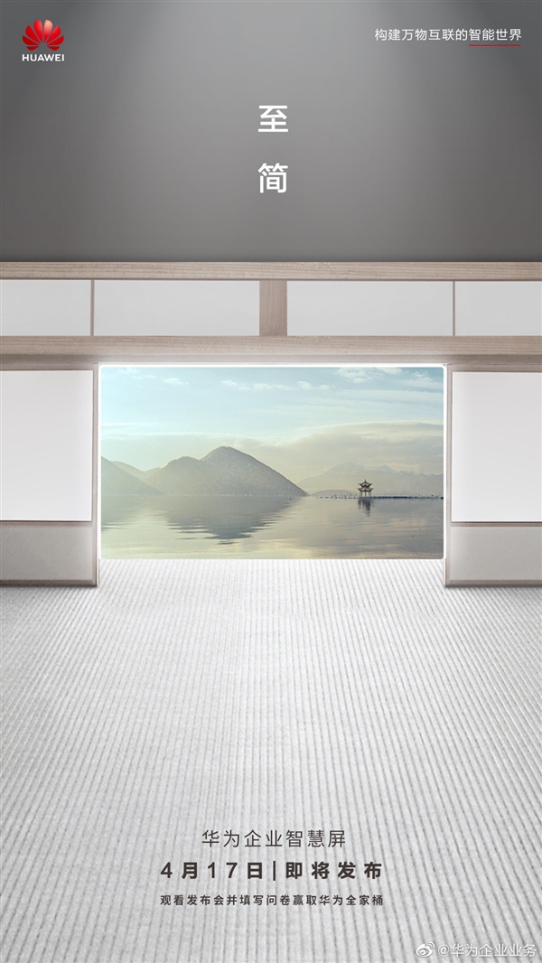 对于这款企业级的智慧屏产品,华为暂未透露具体情况,只是做了很模糊的宣传表述——是化繁为简,智慧尽显;是突破空间,不止于屏;还是科技美学,应云而生;让智慧触手可及。