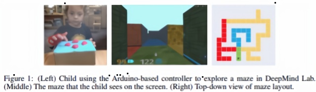 论文采用的方法结合了在DeepMind实验室里的实验设置,其中包括针对AI的导航和难题解决任务。这些任务需要AI具备物理或空间导航技能。在实验设置中,允许孩子通过自定义控制与DeepMind实验室进行交互。这个控制器包括前进、后退、左移和右转四个动作。