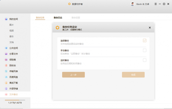 我们知道,此前PC端备份资料基本依靠用户手动添加,而那些没有备份习惯的用户往往会忘记将资料上传备份,进行同步,给生活和工作带来不少不便之处。此次PC自动备份功能的加入对于文件量过大、没有数据备份习惯的用户尤其是内容创作者和职场白领来说尤为实用。一些重要文件、需要多场合使用的文件都可以通过此功能进行备份同步,这样就无须复制多份文件,也不必担心外出参会或下班后领导、客户急需资料的时候不能立即提供。除此之外,对于下班时还未完成的结尾性工作或者下班后的紧急需求,也可通过自动备份将文件直接同步,从此告别下班背电脑回家,即便是休假的时候,也能将领导同事和客户急需的文件资料快速分享传送。