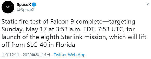 马斯克表示,首批 VisorSat 试验卫星将于本周日,随其它星链卫星(总共 60 颗)从佛罗里达发射升空,且有望在 6 月份得到全面普及。
