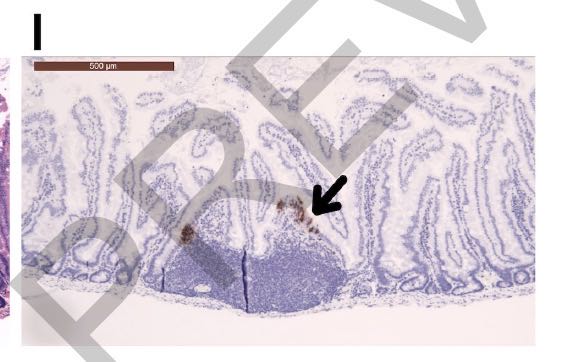 但在接种病毒后2天从十二指肠上皮细胞中检测到病毒抗原,如下图所示: