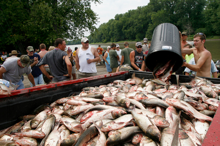 上世纪七十年代的时候,美国阿肯色州一些渔民们从中国引进了亚洲鲤鱼,想用这些杂食性鱼类来控制运河水域和养鱼场里的水草和水藻。