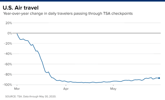 随着航空公司纷纷呼吁政府救助以维持运营,航空旅游业已成为受冠状病毒影响最明显的经济领域之一。根据美国运输安全管理局(TSA)安检系统的数据,今年3月和4月,通过美国运输安全管理局(Transportation Security Administration,简称TSA)安检点的旅客人数同比下降了近100%,5月仅略有回升。 然而,随着旅行增加,航空公司不得不调整预订政策,以减轻客户对感染新冠病毒的担忧。