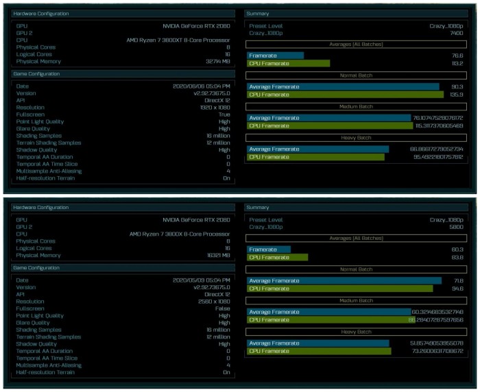 昨日,AMD锐龙7 3800XT现身《奇点灰烬(Ashes of the Singularity)》基准库,《奇点灰烬》的跑分成绩中有单独对CPU的考察,于是外媒控制变量,找来一台同样RTX 2080显卡的基准成绩来做粗略对比。其中以三种级别负载的平均成绩为例,Ryzen 7 3800XT的CPU平均帧率是113.2,Ryzen 7 3800X是83.8,变化幅度为35%。