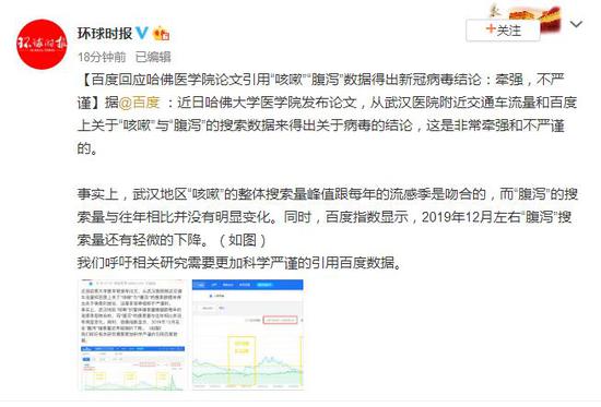 (原标题:百度回应哈佛医学院论文引用“咳嗽”“腹泻”数据得出新冠病毒结论:牵强,不严谨)