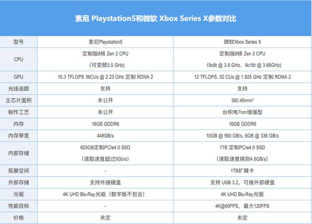 最后,我们来对比一下这两款次时代主机的参数,再一起来期待一下微软和索尼公布价格吧。