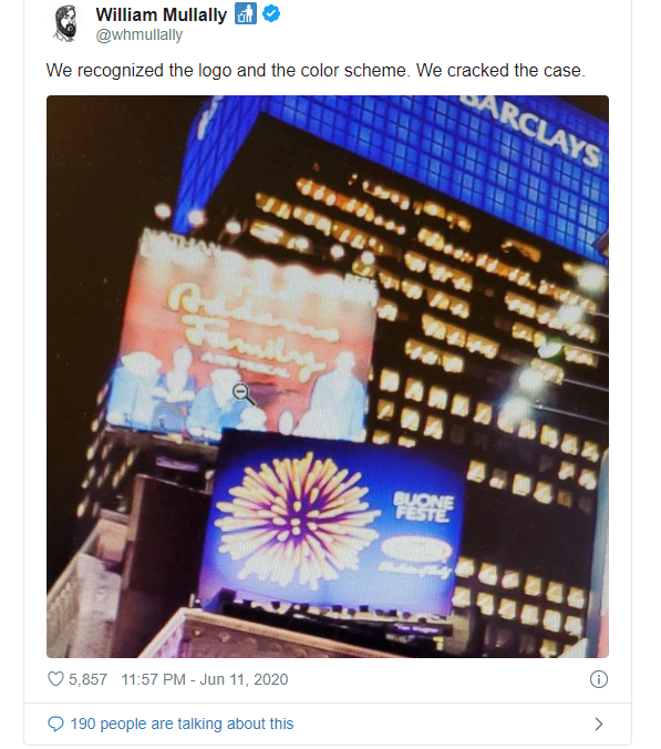 据MCUCosmic报道,他发现这一幕是2011年4月23日在纽约拍摄的。随后,他利用YouTube和时代广场那段时间的街景地图,追踪了“新冠病毒”广告牌。结果发现这实际上是一个意大利面条品牌的广告。
