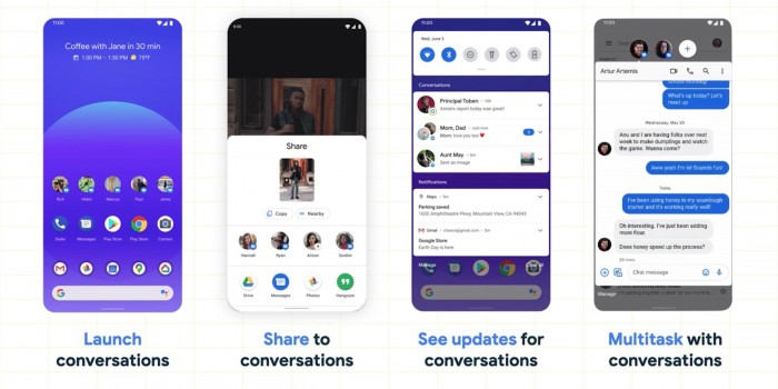 今天泄露的名为“对话通知:新功能和最佳实践”视频预览了所有即将推出的与Android 11相关功能,以及开发人员如何集成这些功能。一张幻灯片预览了面向用户的更改,屏幕截图显示了四个联系人出现在共享表中,作为直接发送到对话的一部分。这些是渲染图,但应反映出Android 11的最终设计。