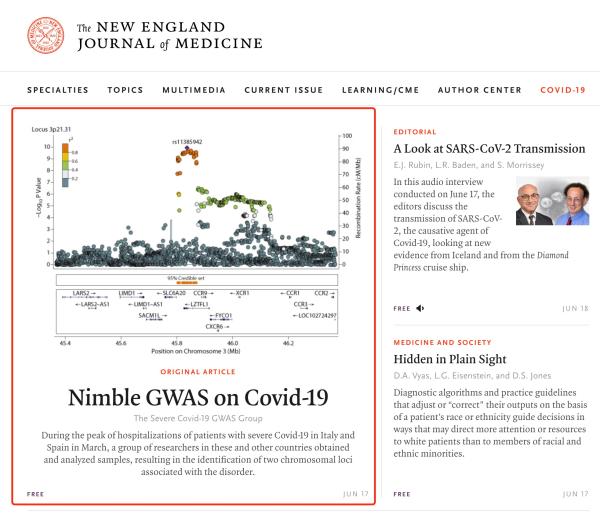 于是,研究者在2020年初意大利和西班牙疫情高峰期,进行了一项全基因组关联研究(GWAS),试图描述导致Covid-19严重呼吸衰竭患者的遗传因素。