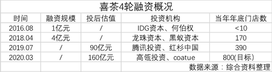 公开资料显示:喜茶完成新一轮D轮投资,由高瓴资本和Coatue(蔻图资本)联合领投,投后估值或将超过160亿元。相比此前由腾讯和红杉资本领投的C轮融资后的90亿估值,估值接近翻倍。